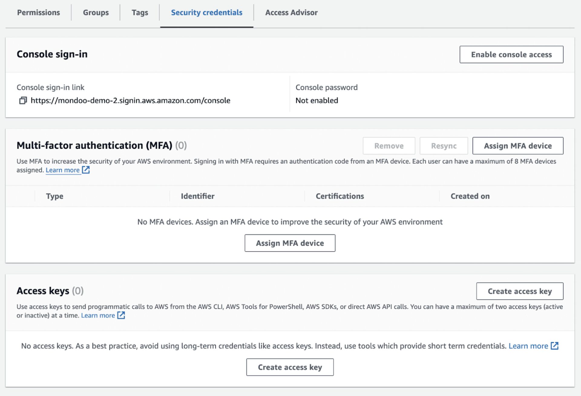 Step A: Create an AWS user and access key for Mondoo
